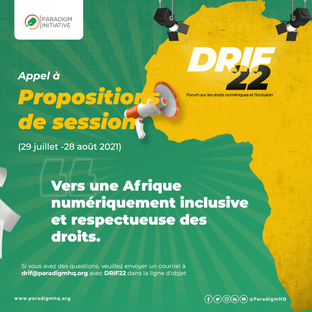 DRIF22 se réunira à nouveau, au milieu de la pandémie de COVID-19 et dans un contexte de défis tels que les violations de la vie privée dans la surveillance de la santé, l’utilisation de lois répressives pour restreindre les libertés des médias, les fermetures indisciplinées d’Internet et la fracture numérique croissante dans certains pays africains. La 9e édition du Forum sur les droits numériques et l’inclusion (DRIF) se tiendra virtuellement du 12 au 14 avril 2022 sous le thème « vers une Afrique numériquement inclusive et respectueuse des droits »  et sera ensuite suivie d’une série de session DRIF22 en personne jusqu’au 12 juin 2022 organisée en collaboration avec des partenaires à travers l’Afrique.