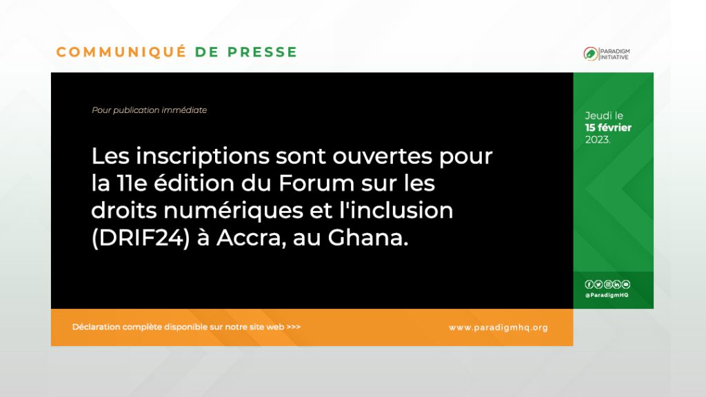 Le Forum est une plateforme importante où les conversations sur la politique numérique en Afrique sont façonnées, les orientations politiques débattues et les partenariats forgés pour l’action. Le Forum sur les droits et l’inclusion numériques s’est taillé une place de choix en tant qu’arène pour débattre de questions mondiales d’actualité sur les droits et l’inclusion numériques, en accueillant les points de vue et les opinions de la société civile, des entreprises technologiques, des gouvernements, du monde universitaire et d’autres parties prenantes. La prochaine édition s’appuiera sur les discussions de la 10e édition, qui s’est focalisée sur un avenir durable de l’internet qui ne laisse personne de côté. Les inscriptions sont ouvertes jusqu’au 3 avril 2024 sur https://drif.paradigmhq.org/