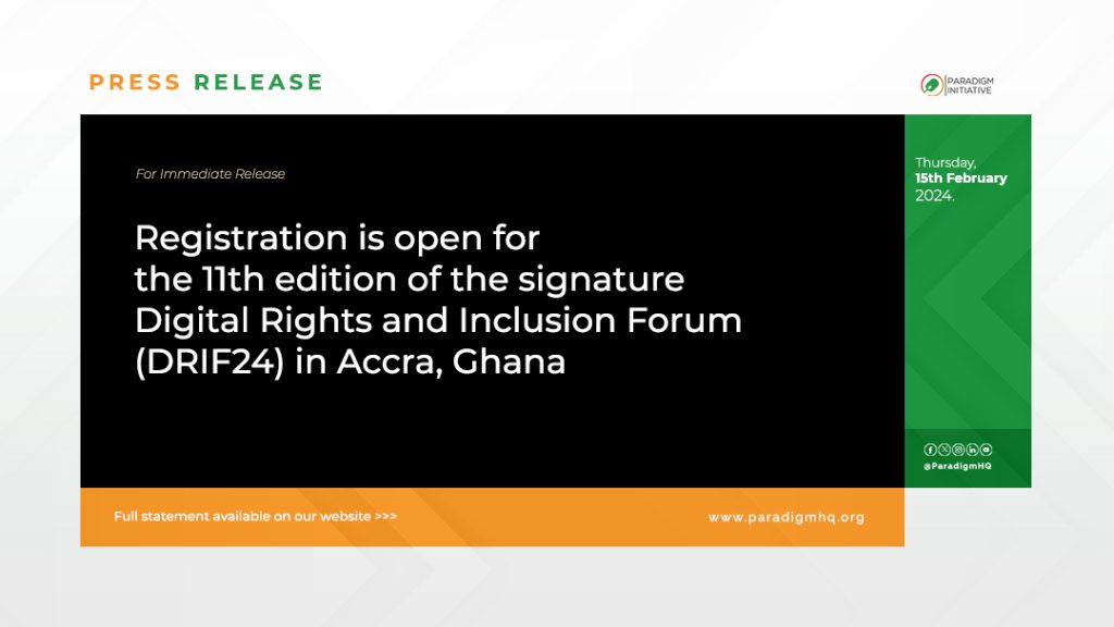 Registration is now open for the 2024 Edition of Digital Rights and Inclusion Forum (DRIF24), a bilingual global event set to bring together hundreds of delegates in Accra, Ghana, from April 23rd to April 25th, 2024.